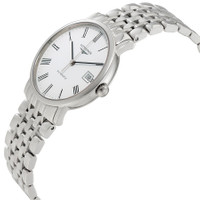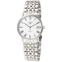 Stainless steel case with a stainless steel bracelet. Fixed stainless steel bezel. White dial with black hands and Roman numeral hour markers. Minute markers around the outer rim. Dial Type: Analog. Date display at the 3 o'clock position. Longines calibre L619/888 automatic movement, based upon ETA 2892, containing 21 Jewels, bitting at 25200 vph, and has a power reserve of approximately 64 hours. Scratch resistant sapphire crystal. Pull / push crown. Transparent case back. Round case shape. Case size: 34.50 mm. Case thickness: 6 mm. Band width: 20 mm. Fold over clasp with a push button release. Water resistant at 30 meters / 100 feet. Functions: date, hour, minute, second. Elegant Series. Luxury watch style. Watch label: Swiss Made. Longines Elegant Automatic White Dial Ladies Steel Watch L4.809.4.11.6. INFORMATION Brand: Longines Series: Elegant Collection Name: Elegant Gender: Womens Model: L4.809.4.11.6 Watch Label: Swiss Made Movement: Automatic Engine: Longines Calibre L619/888 Power Reserve: 42 hours CASE Case Size: 34.50 mm Case Thickness: 6 mm Case Material: Stainless Steel Case Shape: Round Case Back: Transparent BAND Band Material: Stainless Steel Band Type: Bracelet Band Color: Silver-tone Band Width: 20 mm Clasp: Fold Over with Push Button Release DIAL Dial Color: White Type: Analog Crystal: Scratch Resistant Sapphire Hands: Black Dial Markers: Roman Numeral Second Markers: Minute Markers around the outer rim Bezel: Fixed Bezel Color: Silver-tone Bezel Material: Stainless Steel Crown: Pull / Push FEATURES Water Resistance: 30 meters / 100 feet Calendar: Date display at the 3 o'clock position Functions: Date, Hour, Minute, Second Watch Features: Stainless Steel, Analog ADDITIONAL INFO Watch Style: Luxury Warranty: 2 Year Jomashop Warranty UPC Code: 7612356183035 Jomashop Sku: LNG48094116 Department: Watches Category: Watches