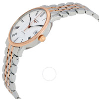 Stainless steel case with a stainless steel bracelet with 18kt rose gold links. Fixed 18kt rose gold bezel. White dial with black hands and Roman numeral hour markers. Minute markers around the outer rim. Dial Type: Analog. Date display at the 3 o'clock position. Longines calibre L619 automatic movement, based upon ETA 2892-A2, containing 21 Jewels, bitting at 28800 vph, and has a power reserve of approximately 42 hours. Scratch resistant sapphire crystal. Pull / push crown. Transparent case back. Round case shape. Case size: 34.5 mm. Case thickness: 6 mm. Fold over clasp with a push button release. Water resistant at 30 meters / 100 feet. Functions: date, hour, minute, second. Elegant Series. Luxury watch style. Watch label: Swiss Made. Longines Elegant Automatic White Dial Ladies Watch L4.809.5.11.7. GENERAL Box Type: Original Box CASE Case Size: 34 Case Thickness: 6 mm Case Material: Stainless Steel Case Shape: Round Case Back: Transparent BAND Band Material: Stainless Steel with 18kt Rose Gold Links Band Type: Bracelet Band Color: Silver-tone Clasp: Fold Over with Push Button Release DIAL Dial Color: White Type: Analog Crystal: Scratch Resistant Sapphire Hands: Black Dial Markers: Roman Numeral Second Markers: Minute Markers around the outer rim Bezel: Fixed Bezel Material: 18kt Rose Gold Crown: Pull / Push INFORMATION Brand: Longines Series: Elegant Collection Name: Elegant Gender: Womens Model: L4.809.5.11.7 Watch Label: Swiss Made Movement: Automatic Engine: Longines Calibre L619 Power Reserve: 42 hours FEATURES Water Resistance: 30 meters / 100 feet Calendar: Date display at the 3 o'clock position Functions: Date, Hour, Minute, Second Watch Features: Analog, Gold, Stainless Steel ADDITIONAL INFO Watch Style: Luxury Warranty: 2 Year Jomashop Warranty UPC Code: 7612356182915 Jomashop Sku: LNG48095117 Department: Watches Category: Watches