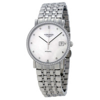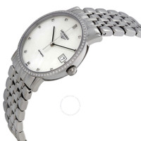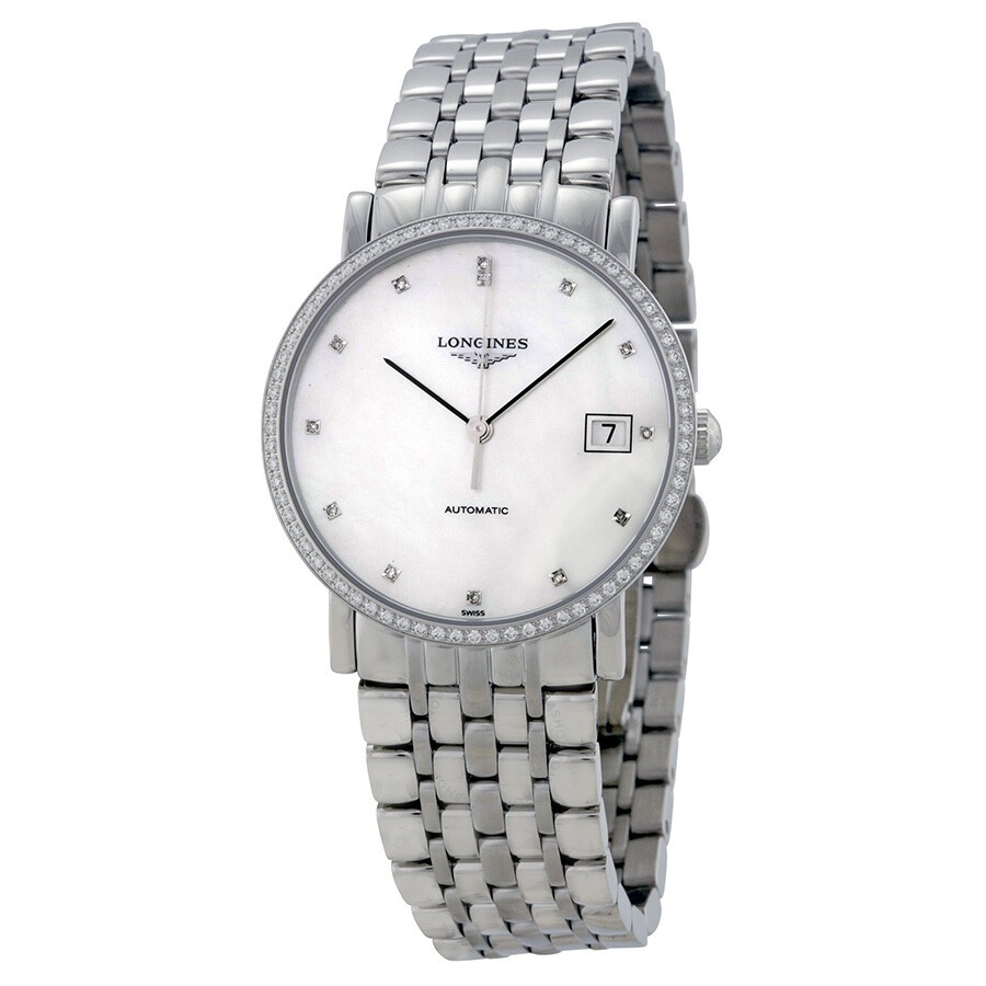 Stainless steel case with a stainless steel bracelet. Fixed stainless steel bezel set with diamonds. White dial with silver-tone hands and diamond hour markers. Dial Type: Analog. Date display at the 3 o'clock position. Longines calibre L619 automatic movement, based upon ETA 2892-A2, containing 21 Jewels, bitting at 28800 vph, and has a power reserve of approximately 42 hours. Scratch resistant sapphire crystal. Pull / push crown. Skeleton case back. Round case shape. Case size: 34.5 mm. Case thickness: 6 mm. Band width: 18 mm. Deployment clasp. Water resistant at 30 meters / 100 feet. Functions: date, hour, minute, second. Elegant Series. Dress watch style. Watch label: Swiss Made. Item Variations: L4 809 0 87 6, L4-809-0-87-6, L4/809/0/87/6, L48090876. Longines Elegant Automatic White Dial Stainless Steel Watch L48090876. INFORMATION Brand: Longines Series: Elegant Collection Name: Elegant Gender: Womens Model: L4.809.0.87.6 Watch Label: Swiss Made Movement: Automatic Engine: Longines Calibre L619 Power Reserve: 42 hours CASE Case Size: 34.5 mm Case Thickness: 6 mm Case Material: Stainless Steel Case Shape: Round Case Back: Skeleton BAND Band Material: Stainless Steel Band Type: Bracelet Band Color: Silver-tone Band Width: 18 mm Clasp: Deployment DIAL Dial Color: White Type: Analog Crystal: Scratch Resistant Sapphire Hands: Silver-tone Dial Markers: Diamond Bezel: Fixed Bezel Color: Silver-tone Bezel Material: Stainless Steel set with Diamonds Crown: Pull / Push FEATURES Water Resistance: 30 meters / 100 feet Calendar: Date display at the 3 o'clock position Functions: Date, Hour, Minute, Second Watch Features: Diamond, Stainless Steel, Analog ADDITIONAL INFO Watch Style: Dress Warranty: 2 Year Jomashop Warranty UPC Code: 7612356185183 Jomashop Sku: LNG48090876 Item Variation: L4 809 0 87 6, L4-809-0-87-6, L4/809/0/87/6, L48090876 Department: Watches Category: Watches