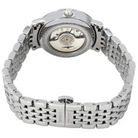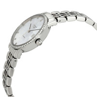 Silver-tone stainless steel case with a silver-tone stainless steel bracelet. Fixed silver-tone bezel with diamond set. Mother of pearl dial with silver-tone hands and diamond hour markers. Dial Type: Analog. Date display at the 3 o'clock position. Longines Calibre L595/592 Automatic movement, based upon ETA 2000-1, containing 20 Jewels, bitting at 28800 vph, and has a power reserve of approximately 40 hours. Scratch resistant sapphire crystal. Pull / push crown. Transparent case back. Round case shape, case size: 29 mm, case thickness: 9 mm. Band width: 14 mm. Deployment clasp. Water resistant at 30 meters / 100 feet. Functions: date, hour, minute, second. Elegant Series. Luxury watch style. Watch label: Swiss Made. Longines Elegant Mother of Pearl Dial Ladies Watch L43100876. CASE Case Size: 29 Case Thickness: 9 mm Case Material: Stainless Steel Case Shape: Round Case Back: Transparent BAND Band Material: Stainless Steel Band Type: Bracelet Band Color: Silver-tone Band Width: 14 mm Clasp: Deployment DIAL Dial Color: Mother of Pearl Type: Analog Crystal: Scratch Resistant Sapphire Hands: Silver-tone Dial Markers: Diamond Bezel: Fixed Bezel Color: Silver-tone Bezel Material: Diamond Set Crown: Pull / Push INFORMATION Brand: Longines Series: Elegant Collection Name: Elegant Gender: Womens Model: L43100876 Watch Label: Swiss Made Movement: Automatic Engine: Longines Calibre L595/592 Power Reserve: 40 hours FEATURES Water Resistance: 30 meters / 100 feet Calendar: Date display at the 3 o'clock position Functions: Date, Hour, Minute, Second Watch Features: Analog, Stainless Steel, Diamond ADDITIONAL INFO Watch Style: Luxury Warranty: 2 Year Jomashop Warranty UPC Code: 703200188249 Jomashop Sku: LNG43100876 Department: Watches Category: Watches