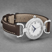 Silver-tone stainless steel case with a brown leather strap. Fixed silver-tone bezel with diamond set. White mother of pearl dial with blue hands and diamond hour markers. Minute markers around the outer rim. Dial Type: Analog. Date display at the 3 o'clock position. Longines Calibre L152 quartz movement. Scratch resistant sapphire crystal. Solid case back. Round case shape, case size: 26 mm. Band width: 12 mm. Water resistant at 30 meters / 100 feet. Functions: date, hour, minute, second. Equestrian Series. Dress watch style. Watch label: Swiss Made. Longines Equestrian Quartz Diamond White Mother of Pearl Dial Ladies Watch L6.130.0.89.2. INFORMATION Brand: Longines Series: Equestrian Collection Name: Equestrian Gender: Womens Model: L6.130.0.89.2 Watch Label: Swiss Made Movement: Quartz Engine: Longines Calibre L152 CASE Case Size: 26 mm Case Material: Stainless Steel Case Shape: Round Case Back: Solid BAND Band Material: Leather Band Type: Strap Band Color: Brown Band Width: 12 mm DIAL Dial Color: White Mother of Pearl Type: Analog Crystal: Scratch Resistant Sapphire Hands: Blue Dial Markers: Diamond Second Markers: Minute Markers around the outer rim Bezel: Fixed Bezel Color: Silver-tone Bezel Material: Diamond Set FEATURES Water Resistance: 30 meters / 100 feet Calendar: Date display at the 3 o'clock position Functions: Date, Hour, Minute, Second Watch Features: Diamond, Stainless Steel, Leather, Analog ADDITIONAL INFO Watch Style: Dress Warranty: 2 Year Jomashop Warranty Jomashop Sku: LNG61300892 Department: Watches Category: Watches
