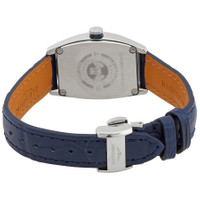 Silver-tone stainless steel case with a blue leather strap. Fixed silver-tone stainless steel bezel. Blue dial with rose gold-tone hands and Roman numeral hour markers. Minute scale around the inner rim. Dial Type: Analog. Date display at the 6 o'clock position. Longines Calibre L592 Automatic movement, based upon ETA A20.L01, containing 22 Jewels, bitting at 28800 vph, and has a power reserve of approximately 40 hours. Scratch resistant sapphire crystal. Solid case back. Tonneau case shape, case size: 26 mm. Deployment with push button release clasp. Water resistant at 30 meters / 100 feet. Functions: date, hour, minute, second. Additional Info: original box, international warranty card, manual (complete accessories). Evidenza Series. Luxury watch style. Watch label: Swiss Made. Longines Evidenza Automatic Blue Dial Ladies Watch L2.142.4.96.2. INFORMATION Brand: Longines Series: Evidenza Collection Name: Evidenza Gender: Womens Model: L2.142.4.96.2 Watch Label: Swiss Made Movement: Automatic Engine: Longines Calibre L592 Power Reserve: 40 hours CASE Case Size: 26 mm Case Material: Stainless Steel Case Shape: Tonneau Case Back: Solid BAND Band Material: Leather Band Type: Strap Band Color: Blue Clasp: Deployment with Push Button Release DIAL Dial Color: Blue Type: Analog Crystal: Scratch Resistant Sapphire Hands: Rose Gold-tone Dial Markers: Roman Numeral Second Markers: Minute Scale around the inner rim Bezel: Fixed Bezel Color: Silver-tone Bezel Material: Stainless Steel FEATURES Water Resistance: 30 meters / 100 feet Calendar: Date display at the 6 o'clock position Functions: Date, Hour, Minute, Second Watch Features: Stainless Steel, Leather, Gold, Analog ADDITIONAL INFO Watch Style: Luxury Warranty: 2 Year Jomashop Warranty Additional Info: Original Box, International Warranty Card, Manual (Complete Accessories) Jomashop Sku: LNG21424962 Department: Watches Category: Watches