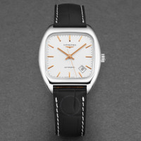Stainless steel case with a black (alligator) leather strap. Fixed stainless steel bezel. Silver dial with rose gold-tone hands and index hour markers. Minute markers around the outer rim. Dial Type: Analog. Date display between the 4 and 5 o'clock positions. Longines calibre L619/888 automatic movement, based upon ETA 2892, containing 21 Jewels, bitting at 25200 vph, and has a power reserve of approximately 64 hours. Scratch resistant sapphire crystal. Pull / push crown. Solid case back. Square case shape. Case size: 36 mm. Band width: 19 mm. Tang clasp. Water resistant at 30 meters / 100 feet. Functions: date, hour, minute, second. Additional Info: original box, manual (complete accessories). Heritage Series. Luxury watch style. Watch label: Swiss Made. Longines Heritage Automatic Silver Dial Men's Watch L2.310.4.72.0. GENERAL Box Type: Original Box CASE Case Size: 36 Case Material: Stainless Steel Case Shape: Square Case Back: Solid BAND Band Material: (Alligator) Leather Band Type: Strap Band Color: Black Band Width: 19 mm Clasp: Tang DIAL Dial Color: Silver Type: Analog Crystal: Scratch Resistant Sapphire Hands: Rose Gold-tone Dial Markers: Index Second Markers: Minute Markers around the outer rim Bezel: Fixed Bezel Color: Silver-tone Bezel Material: Stainless Steel Crown: Pull / Push INFORMATION Brand: Longines Series: Heritage Collection Name: Heritage Gender: Mens Model: L2.310.4.72.0 Watch Label: Swiss Made Movement: Automatic Engine: Longines Calibre L619/888 Power Reserve: 42 hours FEATURES Water Resistance: 30 meters / 100 feet Calendar: Date display between the 4 and 5 o'clock positions Functions: Date, Hour, Minute, Second Watch Features: Alligator Leather, Analog, Gold, Leather, Stainless Steel ADDITIONAL INFO Watch Style: Luxury Warranty: 2 Year Jomashop Warranty Additional Info: Original Box, Manual (Complete Accessories) Jomashop Sku: LNG23104720 Department: Watches Category: Watches