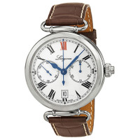 Stainless steel case with a brown crocodile leather strap. Fixed stainless steel bezel. White dial with blue hands and Roman numeral hour markers. Minute markers around the outer rim. Dial Type: Analog. Date display at the 6 o'clock position. Chronograph - two sub-dials displaying: 60 second and 30 minute. Longines Calibre L788 automatic movement with about 54 hours of power reserve. Scratch resistant sapphire crystal. Pull / push crown. Skeleton case back. Case size: 40 mm. Case thickness: 14 mm. Round case shape. Tang clasp. Water resistant at 30 meters / 100 feet. Functions: chronograph, column wheel, monopoussoir, date, hour, minute, small second. Dress watch style. Watch label: Swiss Made. Longines Heritage White Dial Brown Leather Men's Watch L27764213. GENERAL Box Type: Original Box Color: Blue / Brown / Skeleton / White CASE Case Size: 40 Case Thickness: 14 mm Case Material: Stainless Steel Case Shape: Round Case Back: Skeleton BAND Band Material: Crocodile Leather Band Type: Strap Band Color: Brown Clasp: Tang DIAL Dial Color: White Type: Analog Crystal: Scratch Resistant Sapphire Hands: Blue Dial Markers: Roman Numeral Second Markers: Minute Markers around the outer rim Sub Dials: Two - 60 Second and 30 Minute Bezel: Fixed Bezel Color: Silver-tone Bezel Material: Stainless Steel Crown: Pull / Push INFORMATION Brand: Longines Series: Heritage Collection Name: Heritage Gender: Mens Model: L27764213 Watch Label: Swiss Made Movement: Automatic Engine: Longines Calibre L788 Power Reserve: 54 hours FEATURES Water Resistance: 30 meters / 100 feet Calendar: Date display at the 6 o'clock position Functions: Chronograph, Column Wheel, Monopoussoir, Date, Hour, Minute, Small Second Watch Features: Analog, Leather, Stainless Steel, Chronograph ADDITIONAL INFO Watch Style: Dress Warranty: 2 Year Jomashop Warranty UPC Code: 0703200179063 Jomashop Sku: LNG27764213 Department: Watches Category: Watches