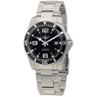 Stainless steel case with a stainless steel bracelet. Uni-directional rotating stainless steel bezel with a black ring. Black dial with luminous silver-tone hands and index hour markers. Arabic numerals mark the 6, 9 and 12 o'clock positions. Minute markers around the outer rim. Dial Type: Analog. Luminescent hands and markers. Date display at the 3 o'clock position. Longines calibre L619/888 automatic movement, based upon ETA 2892, containing 21 Jewels, bitting at 25200 vph, and has a power reserve of approximately 64 hours. Scratch resistant sapphire crystal. Screw down crown. Solid case back. Round case shape. Case size: 41 mm. Case thickness: 12 mm. Band width: 21 mm. Fold over clasp with a safety release. Water resistant at 300 meters / 1000 feet. Functions: date, hour, minute, second. Hydroconquest Series. Dive watch style. Watch label: Swiss Made. Longines HydroConquest 41mm Automatic Black Dial Men's Watch L3.742.4.56.6. INFORMATION Brand: Longines Series: Hydroconquest Collection Name: HydroConquest Gender: Mens Model: L3.742.4.56.6 Watch Label: Swiss Made Movement: Automatic Engine: Longines Calibre L619/888 Power Reserve: 64 hours CASE Case Size: 41 mm Case Thickness: 12 mm Case Material: Stainless Steel Case Shape: Round Case Back: Solid BAND Band Material: Stainless Steel Band Type: Bracelet Band Color: Silver-tone Band Width: 21 mm Clasp: Fold Over with Safety Release DIAL Dial Color: Black Type: Analog Crystal: Scratch Resistant Sapphire Hands: Luminous Silver-tone Dial Markers: Index Second Markers: Arabic Numerals mark the 6, 9 and 12 o'clock positions. Minute Markers around the outer rim Luminiscence: Hands and Markers Bezel: Uni-directional Rotating Bezel Color: Silver-tone Bezel Material: Stainless Steel with a Black Ring Crown: Screw Down FEATURES Water Resistance: 300 meters / 1000 feet Calendar: Date display at the 3 o'clock position Functions: Date, Hour, Minute, Second Watch Features: Stainless Steel, Analog ADDITIONAL INFO Watch Style: Dive Warranty: 2 Year Jomashop Warranty UPC Code: 703200198538 Jomashop Sku: LNG37424566 Department: Watches Category: Watches