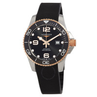 Silver-tone stainless steel case with a black rubber strap. Uni-directional rotating black ceramic bezel. Black dial with rose gold-tone hands and index hour markers. Minute markers around the outer rim. Dial Type: Analog. Luminescent hands and markers. Date display at the 3 o'clock position. Longines Calibre L888 Automatic movement, based upon ETA A31.L11, containing 21 Jewels, bitting at 25200 vph, and has a power reserve of approximately 64 hours. Scratch resistant sapphire crystal. Screw down crown. Solid case back. Round case shape, case size: 43 mm. Deployment with push button release clasp. Water resistant at 300 meters / 1000 feet. Functions: date, hour, minute, second. Additional Info: original box, international warranty card, manual (complete accessories). Hydroconquest Series. Luxury watch style. Watch label: Swiss Made. Longines HydroConquest Automatic Black Dial Men's Watch L3.782.3.58.9. GENERAL Box Type: Original Box CASE Case Size: 43 Case Material: Stainless Steel Case Shape: Round Case Back: Solid BAND Band Material: Rubber Band Type: Strap Band Color: Black Clasp: Deployment with Push Button Release DIAL Dial Color: Black Type: Analog Crystal: Scratch Resistant Sapphire Hands: Rose Gold-tone Dial Markers: Index Second Markers: Minute Markers around the outer rim Luminiscence: Hands and Markers Bezel: Uni-directional Rotating Bezel Color: Black Bezel Material: Ceramic Crown: Screw Down INFORMATION Brand: Longines Series: Hydroconquest Collection Name: HydroConquest Gender: Mens Model: L3.782.3.58.9 Watch Label: Swiss Made Movement: Automatic Engine: Longines Calibre L888 Power Reserve: 64 hours FEATURES Water Resistance: 300 meters / 1000 feet Calendar: Date display at the 3 o'clock position Functions: Date, Hour, Minute, Second Watch Features: Analog, Ceramic, Gold, Rubber, Stainless Steel ADDITIONAL INFO Watch Style: Luxury Warranty: 2 Year Jomashop Warranty Additional Info: Original Box, Manual (Complete Accessories) Jomashop Sku: LNG37823589 Department: Watches Category: Watches