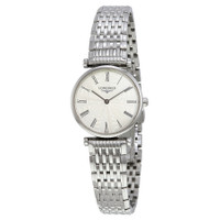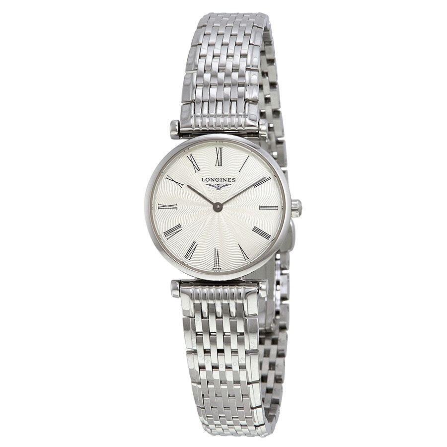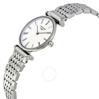 Stainless steel case with a stainless steel bracelet. Fixed stainless steel bezel. Mother of pearl dial with black hands and Roman numeral hour markers. Dial Type: Analog. Longines calibre L209 quartz movement. Scratch resistant sapphire crystal. Pull / push crown. Solid case back. Round case shape. Case size: 24 mm. Case thickness: 5 mm. Band width: 16 mm. Fold over clasp with a push button release. Water resistant at 30 meters / 100 feet. Functions: hour, minute. La Grande Classique Series. Casual watch style. Watch label: Swiss. Item Variations: L4 209 4 71 6, L4-209-4-71-6, L4/209/4/71/6, L42094716. Longines La Grande Classique Ladies Watch L4.209.4.71.6. INFORMATION Brand: Longines Series: La Grande Classique Collection Name: La Grande Classique Gender: Womens Model: L4.209.4.71.6 Watch Label: Swiss Movement: Quartz Engine: Longines Calibre L209 CASE Case Size: 24 mm Case Thickness: 5 mm Case Material: Stainless Steel Case Shape: Round Case Back: Solid BAND Band Material: Stainless Steel Band Type: Bracelet Band Color: Silver-tone Band Width: 16 mm Clasp: Fold Over with Push Button Release DIAL Dial Color: Mother of Pearl Type: Analog Crystal: Scratch Resistant Sapphire Hands: Black Dial Markers: Roman Numeral Bezel: Fixed Bezel Color: Silver-tone Bezel Material: Stainless Steel Crown: Pull / Push FEATURES Water Resistance: 30 meters / 100 feet Functions: Hour, Minute Watch Features: Stainless Steel, Analog ADDITIONAL INFO Watch Style: Casual Warranty: 2 Year Jomashop Warranty UPC Code: 7612356108922 Jomashop Sku: LNG42094716 Item Variation: L4 209 4 71 6, L4-209-4-71-6, L4/209/4/71/6, L42094716 Department: Watches Category: Watches