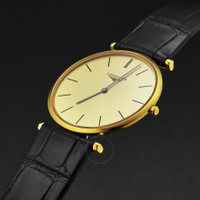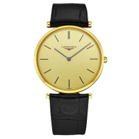 Yellow gold-tone stainless steel case with a black leather strap. Fixed yellow gold-tone stainless steel bezel. Gold-tone dial with black hands and index hour markers. Dial Type: Analog. Longines Calibre L420 quartz movement. Scratch resistant sapphire crystal. Round case shape, case size: 36 mm. Water resistant at 30 meters / 100 feet. Functions: hour, minute. Additional Info: original box, international warranty card, manual (complete accessories). La Grande Series. Luxury watch style. Watch label: Swiss Made. Longines La Grande Quartz Gold Dial Ladies Watch L4.755.2.32.2. CASE Case Size: 36 Case Material: Stainless Steel Case Shape: Round BAND Band Material: Leather Band Type: Strap Band Color: Black DIAL Dial Color: Gold-tone Type: Analog Crystal: Scratch Resistant Sapphire Hands: Black Dial Markers: Index Bezel: Fixed Bezel Color: Yellow Gold-tone Bezel Material: Stainless Steel INFORMATION Brand: Longines Series: La Grande Collection Name: La Grande Gender: Womens Model: L4.755.2.32.2 Watch Label: Swiss Made Movement: Quartz Engine: Longines Calibre L420 FEATURES Water Resistance: 30 meters / 100 feet Functions: Hour, Minute Watch Features: Analog, Gold, Leather, Stainless Steel ADDITIONAL INFO Watch Style: Luxury Warranty: 2 Year Jomashop Warranty Additional Info: Original Box, Manual (Complete Accessories) Jomashop Sku: LNG47552322 Department: Watches Category: Watches