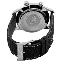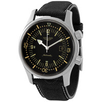 Stainless steel case with a black fabric (leather backed) strap. Bi-directional rotating stainless steel bezel. Black dial with luminous silver-tone hands and index hour markers. Roman numerals mark the 6, 9 and 12 o'clock positions. Minute markers. Dial Type: Analog. Luminescent hands and markers. Date display at the 3 o'clock position. Longines calibre L888 automatic movement, based upon ETA A31.L11, containing 21 Jewels, bitting at 25200 vph, and has a power reserve of approximately 64 hours. Scratch resistant sapphire crystal. Screw down crown. Solid case back. Round case shape. Case size: 42 mm. Band width: 22 mm. Tang clasp. Water resistant at 300 meters / 1000 feet. Functions: date, hour, minute, second. Legend Diver Series. Watch label: Swiss Made. Longines Legend Diver Automatic Black Dial Men's Watch L37744500. INFORMATION Brand: Longines Series: Legend Diver Collection Name: Legend Diver Gender: Mens Model: L37744500 Watch Label: Swiss Made Movement: Automatic Engine: Longines Calibre L888 Power Reserve: 64 hours CASE Case Size: 42 mm Case Material: Stainless Steel Case Shape: Round Case Back: Solid BAND Band Material: Fabric (Leather Backed) Band Type: Strap Band Color: Black Band Width: 22 mm Clasp: Tang DIAL Dial Color: Black Type: Analog Crystal: Scratch Resistant Sapphire Hands: Luminous Silver-tone Dial Markers: Index Second Markers: Roman Numerals mark the 6, 9 and 12 o'clock positions. Minute Markers Luminiscence: Hands and Markers Bezel: Bi-directional Rotating Bezel Color: Silver-tone Bezel Material: Stainless Steel Crown: Screw Down FEATURES Water Resistance: 300 meters / 1000 feet Calendar: Date display at the 3 o'clock position Functions: Date, Hour, Minute, Second Watch Features: Stainless Steel, Leather, Analog ADDITIONAL INFO Warranty: 2 Year Jomashop Warranty UPC Code: 7612356204051 Jomashop Sku: LNG37744500 Department: Watches Category: Watches