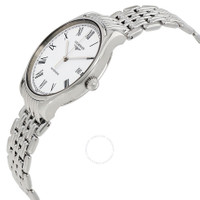 Stainless steel case with a stainless steel bracelet. Fixed stainless steel bezel. White dial with silver-tone hands and Roman numeral hour markers. Minute markers around an inner ring. Dial Type: Analog. Date display at the 3 o'clock position. Longines calibre L619 automatic movement, based upon ETA 2892-A2, containing 21 Jewels, bitting at 28800 vph, and has a power reserve of approximately 42 hours. Scratch resistant sapphire crystal. Pull / push crown. Transparent case back. Round case shape. Case size: 35 mm. Case thickness: 8 mm. Band width: 18 mm. Hidden fold over clasp. Water resistant at 30 meters / 100 feet. Functions: date, hour, minute, second. Lyre Series. Dress watch style. Watch label: Swiss Made. Longines Lyre Automatic White Dial Ladies Watch L48604116. GENERAL Box Type: Original Box CASE Case Size: 35 Case Thickness: 8 mm Case Material: Stainless Steel Case Shape: Round Case Back: Transparent BAND Band Material: Stainless Steel Band Type: Bracelet Band Color: Silver-tone Band Width: 18 mm Clasp: Hidden Fold Over DIAL Dial Color: White Type: Analog Crystal: Scratch Resistant Sapphire Hands: Silver-tone Dial Markers: Roman Numeral Second Markers: Minute Markers around an inner ring Bezel: Fixed Bezel Color: Silver-tone Bezel Material: Stainless Steel Crown: Pull / Push INFORMATION Brand: Longines Series: Lyre Collection Name: Lyre Gender: Womens Model: L48604116 Watch Label: Swiss Made Movement: Automatic Engine: Longines Calibre L619 Power Reserve: 42 hours FEATURES Water Resistance: 30 meters / 100 feet Calendar: Date display at the 3 o'clock position Functions: Date, Hour, Minute, Second Watch Features: Analog, Stainless Steel ADDITIONAL INFO Watch Style: Dress Warranty: 2 Year Jomashop Warranty UPC Code: 7612356183561 Jomashop Sku: LNG48604116 Department: Watches Category: Watches