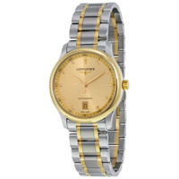 Stainless steel case with a stainless steel bracelet and 18kt yellow gold (cap) links. Fixed 18kt yellow gold (cap) bezel. Champagne dial with yellow gold leaf-style hands and diamond hour markers. Minute markers around the outer rim. Dial Type: Analog. Date display at the 6 o'clock position. Longines calibre L619 automatic movement, based upon ETA 2892-A2, containing 21 Jewels, bitting at 28800 vph, and has a power reserve of approximately 42 hours. Scratch resistant sapphire crystal. Pull / push crown. Transparent case back. Round case shape. Case size: 38.5 mm. Case thickness: 9.5 mm. Band width: 20 mm. Fold over clasp. Water resistant at 30 meters / 100 feet. Functions: date, hour, minute, second. Master Series. Luxury watch style. Watch label: Swiss Made. Item Variations: L26285377. Longines Master Automatic Diamond Champagne Dial Men's Watch L2.628.5.37.7. GENERAL Box Type: Original Box CASE Case Size: 38 Case Thickness: 9.5 mm Case Material: Stainless Steel Case Shape: Round Case Back: Transparent BAND Band Material: Stainless Steel and 18kt Yellow Gold (Cap) Band Type: Bracelet Band Color: Two-tone (Silver-tone and Gold-tone) Band Width: 20 mm Clasp: Fold Over DIAL Dial Color: Champagne Type: Analog Crystal: Scratch Resistant Sapphire Hands: Yellow Gold Leaf-style Dial Markers: Diamond Second Markers: Minute Markers around the outer rim Bezel: Fixed Bezel Material: 18kt Yellow Gold (Cap) Crown: Pull / Push INFORMATION Brand: Longines Series: Master Collection Name: Master Gender: Mens Model: L2.628.5.37.7 Watch Label: Swiss Made Movement: Automatic Engine: Longines Calibre L619 Power Reserve: 42 hours FEATURES Water Resistance: 30 meters / 100 feet Calendar: Date display at the 6 o'clock position Functions: Date, Hour, Minute, Second Watch Features: Analog, Gold, Stainless Steel, Diamond ADDITIONAL INFO Watch Style: Luxury Warranty: 2 Year Jomashop Warranty UPC Code: 683498424604 Jomashop Sku: LNG26285377 Item Variation: L26285377 Department: Watches Category: Watches