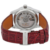 Silver-tone stainless steel case with a red alligator band. Fixed silver-tone stainless steel bezel. Mother of pearl dial with silver-tone hands and diamond hour markers. Minute markers around the outer rim. Dial Type: Analog. Date display at the 6 o'clock position. One subdial displaying: date/moonphase. Longines Calibre L899 Automatic movement, based upon ETA A31.L91, containing 21 Jewels, bitting at 25200 vph, and has a power reserve of approximately 64 hours. Scratch resistant sapphire crystal. Screw down crown. Transparent see through case back. Round case shape, case size: 34 mm. Fold over clasp. Water resistant at 30 meters / 100 feet. Functions: moon phase, date, hour, minute, second. Additional Info: original box, international warranty card, manual (complete accessories). Master Series. Luxury watch style. Watch label: Swiss Made. Longines Master Automatic Diamond Ladies Watch L2.409.4.87.2. INFORMATION Brand: Longines Series: Master Collection Name: Master Gender: Womens Model: L2.409.4.87.2 Watch Label: Swiss Made Movement: Automatic Engine: Longines Calibre L899 Power Reserve: 64 hours CASE Case Size: 34 mm Case Material: Stainless Steel Case Shape: Round Case Back: Transparent See Through BAND Band Material: Alligator Band Type: Strap Band Color: Red Clasp: Fold Over DIAL Dial Color: Mother of Pearl Type: Analog Crystal: Scratch Resistant Sapphire Hands: Silver-tone Dial Markers: Diamond Second Markers: Minute Markers around the outer rim Sub Dials: One - Date/Moonphase Bezel: Fixed Bezel Color: Silver-tone Bezel Material: Stainless Steel Crown: Screw Down FEATURES Water Resistance: 30 meters / 100 feet Calendar: Date display at the 6 o'clock position Functions: Moon Phase, Date, Hour, Minute, Second Watch Features: Diamond, Moon Phase, Stainless Steel, Analog, Alligator Leather ADDITIONAL INFO Watch Style: Luxury Warranty: 2 Year Jomashop Warranty UPC Code: 7612356220273 Additional Info: Original Box, International Warranty Card, Manual (Complete Accessories) Jomashop Sku: LNG24094872 Department: Watches Category: Watches
