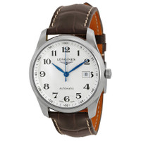 Stainless steel case with a brown (alligator) leather strap. Fixed stainless steel bezel. Silver dial with blue leaf-style hands and black Arabic numeral hour markers. Minute markers around the outer rim. Dial Type: Analog. Date display at the 3 o'clock position. Longines calibre L619/888 automatic movement, based upon ETA 2892, containing 21 Jewels, bitting at 25200 vph, and has a power reserve of approximately 64 hours. Scratch resistant sapphire crystal. Pull / push crown. Skeleton case back. Round case shape. Case size: 40 mm. Case thickness: 9.5 mm. Band width: 21 mm. Deployment clasp. Water resistant at 30 meters / 100 feet. Functions: date, hour, minute, second. Master Series. Dress watch style. Watch label: Swiss Made. Longines Master Automatic Silver Dial Brown Leather Watch L27934783. INFORMATION Brand: Longines Series: Master Collection Name: Master Gender: Mens Model: L27934783 Watch Label: Swiss Made Movement: Automatic Engine: Longines Calibre L619/888 Power Reserve: 42 hours CASE Case Size: 40 mm Case Thickness: 9.5 mm Case Material: Stainless Steel Case Shape: Round Case Back: Skeleton BAND Band Material: (Alligator) Leather Band Type: Strap Band Color: Brown Band Width: 21 mm Clasp: Deployment DIAL Dial Color: Silver Type: Analog Crystal: Scratch Resistant Sapphire Hands: Blue Leaf-style Dial Markers: Black Arabic Numeral Second Markers: Minute Markers around the outer rim Bezel: Fixed Bezel Color: Silver-tone Bezel Material: Stainless Steel Crown: Pull / Push FEATURES Water Resistance: 30 meters / 100 feet Calendar: Date display at the 3 o'clock position Functions: Date, Hour, Minute, Second Watch Features: Stainless Steel, Leather, Analog, Alligator Leather ADDITIONAL INFO Watch Style: Dress Warranty: 2 Year Jomashop Warranty UPC Code: 683498484592 Jomashop Sku: LNG27934783 Department: Watches Category: Watches