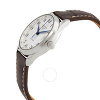 Silver-tone stainless steel case with a brown leather strap. Fixed silver-tone stainless steel bezel. Silver-tone dial with blue hands and Arabic numeral hour markers. Minute markers around the outer rim. Dial Type: Analog. Date display at the 3 o'clock position. Longines Calibre L888 Automatic movement, based upon ETA A31.L11, containing 21 Jewels, bitting at 25200 vph, and has a power reserve of approximately 64 hours. Scratch resistant sapphire crystal. Transparent see through case back. Round case shape, case size: 34 mm. Deployment with push button release clasp. Water resistant at 30 meters / 100 feet. Functions: date, hour, minute, second. Additional Info: original box, international warranty card, manual (complete accessories). Master Series. Luxury watch style. Watch label: Swiss Made. Longines Master Automatic Silver Dial Ladies Watch L2.357.4.78.3. INFORMATION Brand: Longines Series: Master Collection Name: Master Gender: Womens Model: L2.357.4.78.3 Watch Label: Swiss Made Movement: Automatic Engine: Longines Calibre L888 Power Reserve: 64 hours CASE Case Size: 34 mm Case Material: Stainless Steel Case Shape: Round Case Back: Transparent See Through BAND Band Material: Leather Band Type: Strap Band Color: Brown Clasp: Deployment with Push Button Release DIAL Dial Color: Silver-tone Type: Analog Crystal: Scratch Resistant Sapphire Hands: Blue Dial Markers: Arabic Numeral Second Markers: Minute Markers around the outer rim Bezel: Fixed Bezel Color: Silver-tone Bezel Material: Stainless Steel FEATURES Water Resistance: 30 meters / 100 feet Calendar: Date display at the 3 o'clock position Functions: Date, Hour, Minute, Second Watch Features: Stainless Steel, Leather, Analog ADDITIONAL INFO Watch Style: Luxury Warranty: 2 Year Jomashop Warranty Additional Info: Original Box, International Warranty Card, Manual (Complete Accessories) Jomashop Sku: LNG23574783 Department: Watches Category: Watches