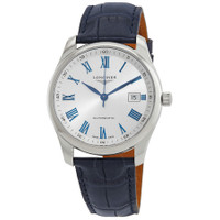 Silver-tone stainless steel case with a blue leather strap. Fixed silver-tone stainless steel bezel. Silver-tone dial with blue hands and Roman numeral hour markers. Minute markers around the outer rim. Dial Type: Analog. Date display at the 3 o'clock position. Longines Calibre L888 Automatic movement, based upon ETA A31.L11, containing 21 Jewels, bitting at 25200 vph, and has a power reserve of approximately 64 hours. Scratch resistant sapphire crystal. Transparent see through case back. Round case shape, case size: 40 mm, case thickness: 9.35 mm. Deployment with push button release clasp. Water resistant at 30 meters / 100 feet. Functions: date, hour, minute, second. Additional Info: original box, international warranty card, manual (complete accessories). Master Series. Luxury watch style. Watch label: Swiss Made. Longines Master Automatic Silver Dial Men's Watch L2.793.4.79.2. INFORMATION Brand: Longines Series: Master Collection Name: Master Gender: Mens Model: L2.793.4.79.2 Watch Label: Swiss Made Movement: Automatic Engine: Longines Calibre L888 Power Reserve: 64 hours CASE Case Size: 40 mm Case Thickness: 9.35 mm Case Material: Stainless Steel Case Shape: Round Case Back: Transparent See Through BAND Band Material: Leather Band Type: Strap Band Color: Blue Clasp: Deployment with Push Button Release DIAL Dial Color: Silver-tone Type: Analog Crystal: Scratch Resistant Sapphire Hands: Blue Dial Markers: Roman Numeral Second Markers: Minute Markers around the outer rim Bezel: Fixed Bezel Color: Silver-tone Bezel Material: Stainless Steel FEATURES Water Resistance: 30 meters / 100 feet Calendar: Date display at the 3 o'clock position Functions: Date, Hour, Minute, Second Watch Features: Stainless Steel, Leather, Analog ADDITIONAL INFO Watch Style: Luxury Warranty: 2 Year Jomashop Warranty Additional Info: Original Box, International Warranty Card, Manual (Complete Accessories) Jomashop Sku: LNG27934792 Department: Watches Category: Watches