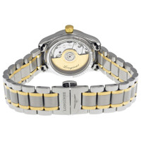 Stainless steel case with a stainless steel bracelet with 18kt yellow gold links. Fixed 18kt yellow gold bezel. White dial with gold-tone leaf-style hands and stick hour markers. Minute markers around the outer rim. Dial Type: Analog. Date display at the 3 o'clock position. Longines calibre L595/592 automatic movement, based upon ETA 2000-1, containing 20 Jewels, bitting at 28800 vph, and has a power reserve of approximately 40 hours. Scratch resistant sapphire crystal. Pull / push crown. Skeleton case back. Round case shape. Case size: 25.5 mm. Case thickness: 9 mm. Band width: 14 mm. Fold over clasp with a push button release. Water resistant at 30 meters / 100 feet. Functions: date, hour, minute, second. Master Series. Casual watch style. Watch label: Swiss Made. Item Variations: L2 128 5 12 7, L2-128-5-12-7, L2/128/5/12/7, L21285127. Longines Master Automatic White Dial Ladies Watch L21285127. GENERAL Color: Gold / Skeleton / White / Yellow INFORMATION Brand: Longines Series: Master Collection Name: Master Gender: Womens Model: L2.128.5.12.7 Watch Label: Swiss Made Movement: Automatic Engine: Longines Calibre L595/592 Power Reserve: 40 hours CASE Case Size: 25.5 mm Case Thickness: 9 mm Case Material: Stainless Steel Case Shape: Round Case Back: Skeleton BAND Band Material: Stainless Steel with 18kt Yellow Gold links Band Type: Bracelet Band Color: Silver-tone Band Width: 14 mm Clasp: Fold Over with Push Button Release DIAL Dial Color: White Type: Analog Crystal: Scratch Resistant Sapphire Hands: Gold-tone Leaf-style Dial Markers: Stick Second Markers: Minute Markers around the outer rim Bezel: Fixed Bezel Color: 18kt Yellow Bezel Material: 18kt Yellow Gold Crown: Pull / Push FEATURES Water Resistance: 30 meters / 100 feet Calendar: Date display at the 3 o'clock position Functions: Date, Hour, Minute, Second Watch Features: Stainless Steel, Gold, Analog ADDITIONAL INFO Watch Style: Casual Warranty: 2 Year Jomashop Warranty UPC Code: 703200168050 Jomashop Sku: LNG21285127 Item Variation: L2 128 5 12 7, L2-128-5-12-7, L2/128/5/12/7, L21285127 Department: Watches Category: Watches