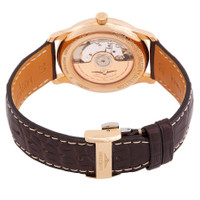 18kt rose gold case with a black leather strap. Fixed gold-tone bezel. Silver-tone dial with gold-tone hands and diamond hour markers. Minute markers around the outer rim. Dial Type: Analog. Date display at the 6 o'clock position. Longines Calibre L619 automatic movement with a 42-hour power reserve. Scratch resistant sapphire crystal. Transparent case back. Case size: 38.50 mm. Case thickness: 9.5 mm. Round case shape. Band width: 20 mm. Triple safety folding buckle clasp. Water resistant at 30 meters / 100 feet. Functions: date, hour, minute, second. Dress watch style. Watch label: Swiss Made. Longines Master Collection Automatic Diamond Men's Watch L2.628.8.77.3. CASE Case Size: 38 Case Thickness: 9.5 mm Case Material: 18kt Rose Gold Case Shape: Round Case Back: Transparent BAND Band Material: Leather Band Type: Strap Band Color: Black Band Width: 20 mm Clasp: Triple Safety Folding Buckle DIAL Dial Color: Silver-tone Type: Analog Crystal: Scratch Resistant Sapphire Hands: Gold-tone Dial Markers: Diamond Second Markers: Minute Markers around the outer rim Bezel: Fixed Bezel Color: Gold-tone INFORMATION Brand: Longines Series: Master Collection Collection Name: Master Collection Gender: Mens Model: L2.628.8.77.3 Watch Label: Swiss Made Movement: Automatic Engine: Longines Calibre L619 Power Reserve: 42 hours FEATURES Water Resistance: 30 meters / 100 feet Calendar: Date display at the 6 o'clock position Functions: Date, Hour, Minute, Second Watch Features: Analog, Gold, Leather, Diamond ADDITIONAL INFO Watch Style: Dress Warranty: 2 Year Jomashop Warranty UPC Code: 7612356183653 Jomashop Sku: LNG26288773 Department: Watches Category: Watches