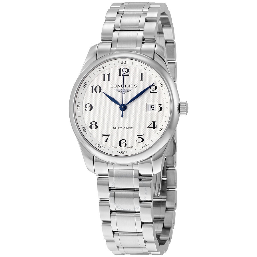 Stainless steel case with a stainless steel bracelet. Fixed stainless steel bezel. Silver dial with blue hands and Arabic numeral hour markers. Arabic numeral minute markers (at 5 minute intervals). Minute markers around the outer rim. Dial Type: Analog. Date display at the 3 o'clock position. Longines calibre L619/888 automatic movement, based upon ETA 2892, containing 21 Jewels, bitting at 25200 vph, and has a power reserve of approximately 64 hours. Scratch resistant sapphire crystal. Pull / push crown. Transparent case back. Round case shape. Case size: 40 mm. Case thickness: 9.5 mm. Band width: 21 mm. Band length: 8 inches. Fold over clasp with a push button release. Water resistant at 30 meters / 100 feet. Functions: date, hour, minute, second. Master Collection Series. Dress watch style. Watch label: Swiss Made. Item Variations: L27934786. Longines Master Collection Automatic Silver Dial Men's Watch L2.793.4.78.6. INFORMATION Brand: Longines Series: Master Collection Collection Name: Master Collection Gender: Mens Model: L2.793.4.78.6 Watch Label: Swiss Made Movement: Automatic Engine: Longines Calibre L619/888 Power Reserve: 42 hours CASE Case Size: 40 mm Case Thickness: 9.5 mm Case Material: Stainless Steel Case Shape: Round Case Back: Transparent BAND Band Material: Stainless Steel Band Type: Bracelet Band Color: Silver-tone Band Length: 8 inches Band Width: 21 mm Clasp: Fold Over with Push Button Release DIAL Dial Color: Silver Type: Analog Crystal: Scratch Resistant Sapphire Hands: Blue Dial Markers: Arabic Numeral Second Markers: Arabic Numeral Minute Markers (at 5 minute intervals). Minute Markers around the outer rim Bezel: Fixed Bezel Color: Silver-tone Bezel Material: Stainless Steel Crown: Pull / Push FEATURES Water Resistance: 30 meters / 100 feet Calendar: Date display at the 3 o'clock position Functions: Date, Hour, Minute, Second Watch Features: Stainless Steel, Analog ADDITIONAL INFO Watch Style: Dress Warranty: 2 Year Jomashop Warranty UPC Code: 683498488804 Jomashop Sku: LNG27934786 Item Variation: L27934786 Department: Watches Category: Watches