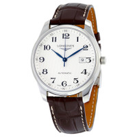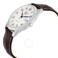 Silver-tone stainless steel case with a brown (alligator) leather strap. Fixed domed silver-tone stainless steel bezel. Silver dial with blue leaf-style hands and black Arabic numeral hour markers. Minute markers around the outer rim. Dial Type: Analog. Date display at the 3 o'clock position. Longines Calibre L619/888 Automatic movement, based upon ETA 2892, containing 21 Jewels, bitting at 25200 vph, and has a power reserve of approximately 64 hours. Scratch resistant sapphire crystal. Pull / push crown. Skeleton case back. Round case shape, case size: 42 mm, case thickness: 10.3 mm. Band width: 21 mm. Deployment clasp. Water resistant at 30 meters / 100 feet. Functions: date, hour, minute, second. Master Series. Luxury watch style. Watch label: Swiss Made. Item Variations: L28934783. Longines Master Collection Automatic Silver Dial Men's Watch L28934783. INFORMATION Brand: Longines Series: Master Collection Name: Master Gender: Mens Model: L2.893.4.78.3 Watch Label: Swiss Made Movement: Automatic Engine: Longines Calibre L619/888 Power Reserve: 42 hours CASE Case Size: 42 mm Case Thickness: 10.3 mm Case Material: Stainless Steel Case Shape: Round Case Back: Skeleton BAND Band Material: (Alligator) Leather Band Type: Strap Band Color: Brown Band Width: 21 mm Clasp: Deployment DIAL Dial Color: Silver Type: Analog Crystal: Scratch Resistant Sapphire Hands: Blue Leaf-style Dial Markers: Black Arabic Numeral Second Markers: Minute Markers around the outer rim Bezel: Fixed Domed Bezel Color: Silver-tone Bezel Material: Stainless Steel Crown: Pull / Push FEATURES Water Resistance: 30 meters / 100 feet Calendar: Date display at the 3 o'clock position Functions: Date, Hour, Minute, Second Watch Features: Stainless Steel, Leather, Analog, Alligator Leather ADDITIONAL INFO Watch Style: Luxury Warranty: 2 Year Jomashop Warranty UPC Code: 703200186436 Jomashop Sku: LNG28934783 Item Variation: L28934783 Department: Watches Category: Watches