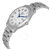 Stainless steel case with a stainless steel bracelet. Fixed domed stainless steel bezel. Silver dial with blue leaf-style hands and Arabic numeral hour markers. Minute markers around the outer rim. Dial Type: Analog. Date display at the 3 o'clock position. Longines calibre L619/888 automatic movement, based upon ETA 2892, containing 21 Jewels, bitting at 25200 vph, and has a power reserve of approximately 64 hours. Scratch resistant sapphire crystal. Pull / push crown. Transparent case back. Round case shape. Case size: 42 mm. Case thickness: 9.64 mm. Band width: 21 mm. Fold over clasp with a push button release. Water resistant at 30 meters / 100 feet. Functions: date, hour, minute, second. Master Collection Series. Luxury watch style. Watch label: Swiss Made. Longines Master Collection Automatic Silver Dial Men's Watch L2.893.4.78.6. GENERAL Box Type: Original Box CASE Case Size: 42 Case Thickness: 9.64 mm Case Material: Stainless Steel Case Shape: Round Case Back: Transparent BAND Band Material: Stainless Steel Band Type: Bracelet Band Color: Silver-tone Band Width: 21 mm Clasp: Fold Over with Push Button Release DIAL Dial Color: Silver Type: Analog Crystal: Scratch Resistant Sapphire Hands: Blue Leaf-style Dial Markers: Arabic Numeral Second Markers: Minute Markers around the outer rim Bezel: Fixed Domed Bezel Color: Silver-tone Bezel Material: Stainless Steel Crown: Pull / Push INFORMATION Brand: Longines Series: Master Collection Collection Name: Master Collection Gender: Mens Model: L2.893.4.78.6 Watch Label: Swiss Made Movement: Automatic Engine: Longines Calibre L619/888 Power Reserve: 48 hours FEATURES Water Resistance: 30 meters / 100 feet Calendar: Date display at the 3 o'clock position Functions: Date, Hour, Minute, Second Watch Features: Analog, Stainless Steel ADDITIONAL INFO Watch Style: Luxury Warranty: 2 Year Jomashop Warranty UPC Code: 7612356186272 Jomashop Sku: LNG28934786 Department: Watches Category: Watches