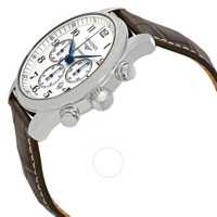 Silver-tone stainless steel case with a brown alligator leather strap. Fixed silver-tone stainless steel bezel. White dial with blue hands and Arabic numeral hour markers. Minute markers around the outer rim. Dial Type: Analog. Date display between the 4 and 5 o'clock positions. Chronograph - three sub-dials displaying: 60 second, 30 minute and 12 hour. Longines Calibre L688 Automatic movement, based upon ETA A08.L01, containing 27 Jewels, bitting at 28800 vph, and has a power reserve of approximately 54 hours. Scratch resistant sapphire crystal. Pull / push crown. Transparent case back. Round case shape, case size: 44 mm, case thickness: 16 mm. Band width: 21 mm. Deployment clasp. Water resistant at 30 meters / 100 feet. Functions: chronograph, column wheel, date, hour, minute, small second. Master Collection Series. Dress watch style. Watch label: Swiss Made. Longines Master Collection Chronograph Automatic White Dial Men's Watch L2.859.4.78.3. INFORMATION Brand: Longines Series: Master Collection Collection Name: Master Collection Gender: Mens Model: L2.859.4.78.3 Watch Label: Swiss Made Movement: Automatic Engine: Longines Calibre L688 Power Reserve: 54 hours CASE Case Size: 44 mm Case Thickness: 16 mm Case Material: Stainless Steel Case Shape: Round Case Back: Transparent BAND Band Material: Alligator Leather Band Type: Strap Band Color: Brown Band Width: 21 mm Clasp: Deployment DIAL Dial Color: White Type: Analog Crystal: Scratch Resistant Sapphire Hands: Blue Dial Markers: Arabic Numeral Second Markers: Minute Markers around the outer rim Sub Dials: Three - 60 Second, 30 Minute and 12 Hour Bezel: Fixed Bezel Color: Silver-tone Bezel Material: Stainless Steel Crown: Pull / Push FEATURES Water Resistance: 30 meters / 100 feet Calendar: Date display between the 4 and 5 o'clock positions Functions: Chronograph, Column Wheel, Date, Hour, Minute, Small Second Watch Features: Chronograph, Stainless Steel, Leather, Analog, Alligator Leather ADDITIONAL INFO Watch Style: Dress Warranty: 2 Year Jomashop Warranty UPC Code: 7612356198633 Jomashop Sku: LNG28594783 Department: Watches Category: Watches