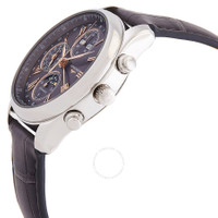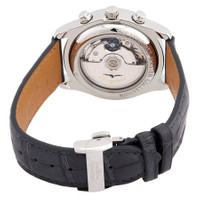 Silver-tone stainless steel case with a grey alligator leather strap. Fixed silver-tone stainless steel bezel. Anthracite dial with rose gold-tone hands and Roman numeral hour markers. Date scale around the outer rim. Dial Type: Analog. Day and month display below the 12 o'clock positions. Three sub-dials displaying: small second/24 hour, moonphase/12 hour, 30 minute. Longines Calibre L687 Automatic movement, based upon ETA 7751, containing 25 Jewels, bitting at 28800 vph, and has a power reserve of approximately 54 hours. Scratch resistant sapphire crystal. Pull / push crown. Transparent case back. Round case shape, case size: 40 mm, case thickness: 14.3 mm. Band width: 21 mm. Folding buckle clasp. Water resistant at 30 meters / 100 feet. Functions: moon phase, chronograph, column wheel, month, date, day, GMT, second time zone, hour, minute, small second. The Longines Master Collection Series. Sport watch style. Watch label: Swiss Made. Longines The Longines Master Collection Chronograph GMT Automatic Moon Phase Anthracite Dial Men's Watch L2.673.4.61.2. CASE Case Size: 40 Case Thickness: 14.3 mm Case Material: Stainless Steel Case Shape: Round Case Back: Transparent BAND Band Material: Alligator Leather Band Type: Strap Band Color: Grey Band Width: 21 mm Clasp: Folding Buckle DIAL Dial Color: Anthracite Type: Analog Crystal: Scratch Resistant Sapphire Hands: Rose Gold-tone Dial Markers: Roman Numeral Second Markers: Date Scale around the outer rim Sub Dials: Three - Small Second/24 Hour, Moonphase/12 Hour, 30 Minute Bezel: Fixed Bezel Color: Silver-tone Bezel Material: Stainless Steel Crown: Pull / Push INFORMATION Brand: Longines Series: Master Collection Collection Name: Master Collection Gender: Mens Model: L2.673.4.61.2 Watch Label: Swiss Made Movement: Automatic Engine: Longines Calibre L687 Power Reserve: 66 hours FEATURES Water Resistance: 30 meters / 100 feet Calendar: Day and Month display below the 12 o'clock positions Functions: Moon Phase, Chronograph, Column Wheel, Month, Date, Day, GMT, Second Time Zone, Hour, Minute, Small Second Watch Features: Alligator Leather, Analog, GMT, Month, Gold, Leather, Stainless Steel, Moon Phase, Chronograph, Time Zone ADDITIONAL INFO Watch Style: Sport Warranty: 2 Year Jomashop Warranty Jomashop Sku: LNG26734612 Department: Watches Category: Watches