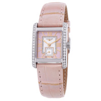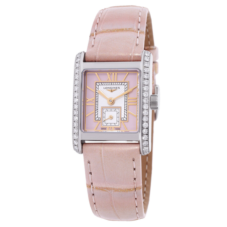 Silver-tone stainless steel case with a pink alligator leather strap. Fixed silver-tone bezel with diamond set. Sunray pink dial with gold-tone hands and index-Roman numeral hour markers. Dial Type: Analog. One subdial displaying: small second. Longines Calibre L178 quartz movement. Scratch resistant sapphire crystal. Pull / push crown. Solid case back. Square case shape, case size: 21.50 x 29.00 mm, case thickness: 6.75 mm. Band width: 16 mm. Buckle clasp. Water resistant at 30 meters / 100 feet. Functions: hour, minute, small second. Additional Info: case set with 38 top wesselton if-vvs diamonds, for a total of 0.456 carats. Mini Dolcevita Series. Dress watch style. Watch label: Swiss Made. Longines Mini Dolcevita Quartz Diamond Ladies Watch L5.200.0.99.2. INFORMATION Brand: Longines Series: Mini Dolcevita Collection Name: Mini Dolcevita Gender: Womens Model: L5.200.0.99.2 Watch Label: Swiss Made Movement: Quartz Engine: Longines Calibre L178 CASE Case Size: 21.50 x 29.00 mm Case Thickness: 6.75 mm Case Material: Stainless Steel Case Shape: Square Case Back: Solid BAND Band Material: Alligator Leather Band Type: Strap Band Color: Pink Band Width: 16 mm Clasp: Buckle DIAL Dial Color: Sunray Pink Type: Analog Crystal: Scratch Resistant Sapphire Hands: Gold-tone Dial Markers: Index-Roman Numeral Sub Dials: One - Small Second Bezel: Fixed Bezel Color: Silver-tone Bezel Material: Diamond Set Crown: Pull / Push FEATURES Water Resistance: 30 meters / 100 feet Functions: Hour, Minute, Small Second Watch Features: Alligator Leather, Analog, Gold, Leather, Stainless Steel, Diamond ADDITIONAL INFO Watch Style: Dress Warranty: 2 Year Jomashop Warranty Additional Info: Case set with 38 Top Wesselton IF-VVS diamonds, for a total of 0.456 carats Jomashop Sku: LNG52000992 Department: Watches Category: Watches