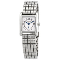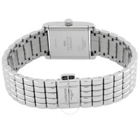 Silver-tone stainless steel case and bracelet. Fixed silver-tone stainless steel bezel. Silver dial with blue hands and index-Roman numeral hour markers. Minute markers around the inner ring. Dial Type: Analog. One subdial displaying: small second. Longines Calibre L178 quartz movement. Scratch resistant sapphire crystal. Pull / push crown. Solid case back. Square case shape, case size: 21.5 x 29 mm, case thickness: 6.75 mm. Band width: 16 mm. Fold over clasp with a safety release. Water resistant at 30 meters / 100 feet. Functions: hour, minute, small second. Mini Dolcevita Series. Casual watch style. Watch label: Swiss Made. Longines Mini Dolcevita Quartz Silver Dial Ladies Watch L5.200.4.75.6. INFORMATION Brand: Longines Series: Mini Dolcevita Collection Name: Mini Dolcevita Gender: Womens Model: L5.200.4.75.6 Watch Label: Swiss Made Movement: Quartz Engine: Longines Calibre L178 CASE Case Size: 21.5 x 29 mm Case Thickness: 6.75 mm Case Material: Stainless Steel Case Shape: Square Case Back: Solid BAND Band Material: Stainless Steel Band Type: Bracelet Band Color: Silver-tone Band Width: 16 mm Clasp: Fold Over with Safety Release DIAL Dial Color: Silver Type: Analog Crystal: Scratch Resistant Sapphire Hands: Blue Dial Markers: Index-Roman Numeral Second Markers: Minute Markers around the inner ring Sub Dials: One - Small Second Bezel: Fixed Bezel Color: Silver-tone Bezel Material: Stainless Steel Crown: Pull / Push FEATURES Water Resistance: 30 meters / 100 feet Functions: Hour, Minute, Small Second Watch Features: Stainless Steel, Analog ADDITIONAL INFO Watch Style: Casual Warranty: 2 Year Jomashop Warranty Jomashop Sku: LNG52004756 Department: Watches Category: Watches