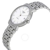 Stainless steel case with a stainless steel bracelet. Fixed stainless steel bezel. White dial with silver-tone hands and index hour markers. Minute markers around the outer rim. Dial Type: Analog. Date display at the 3 o'clock position. Longines calibre L619/888 automatic movement, based upon ETA 2892, containing 21 Jewels, bitting at 25200 vph, and has a power reserve of approximately 64 hours. Scratch resistant sapphire crystal. Pull / push crown. Transparent case back. Round case shape. Case size: 34.50 mm. Case thickness: 7 mm. Band width: 18 mm. Fold over clasp with a push button release. Water resistant at 30 meters / 100 feet. Functions: date, hour, minute, second. Presence Series. Dress watch style. Watch label: Swiss Made. Longines Presence Automatic White Dial Ladies Watch L4.821.4.12.6. GENERAL Box Type: Original Box CASE Case Size: 34 Case Thickness: 7 mm Case Material: Stainless Steel Case Shape: Round Case Back: Transparent BAND Band Material: Stainless Steel Band Type: Bracelet Band Color: Silver-tone Band Width: 18 mm Clasp: Fold Over with Push Button Release DIAL Dial Color: White Type: Analog Crystal: Scratch Resistant Sapphire Hands: Silver-tone Dial Markers: Index Second Markers: Minute Markers around the outer rim Bezel: Fixed Bezel Color: Silver-tone Bezel Material: Stainless Steel Crown: Pull / Push INFORMATION Brand: Longines Series: Presence Collection Name: Presence Gender: Womens Model: L4.821.4.12.6 Watch Label: Swiss Made Movement: Automatic Engine: Longines Calibre L619/888 Power Reserve: 42 Hour FEATURES Water Resistance: 30 meters / 100 feet Calendar: Date display at the 3 o'clock position Functions: Date, Hour, Minute, Second Watch Features: Analog, Stainless Steel ADDITIONAL INFO Watch Style: Dress Warranty: 2 Year Jomashop Warranty UPC Code: 703200187242 Jomashop Sku: LNG48214126 Department: Watches Category: Watches