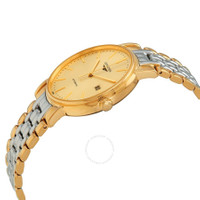Two-tone (silver-tone and gold-tone) stainless steel and yellow gold PVD case with a two-tone (silver-tone and gold-tone) stainless steel and yellow gold PVD bracelet. Fixed yellow gold-tone stainless steel bezel. Champagne dial with gold-tone hands and index hour markers. Minute markers around the outer rim. Dial Type: Analog. Date display at the 3 o'clock position. Longines Calibre L619/888 Automatic movement, based upon ETA 2892, containing 21 Jewels, bitting at 25200 vph, and has a power reserve of approximately 64 hours. Scratch resistant sapphire crystal. Pull / push crown. Transparent case back. Round case shape. Case size: 38.50 mm. Hidden clasp. Water resistant at 30 meters / 100 feet. Functions: date, hour, minute, second. Casual watch style. Watch label: Swiss Made. Longines Presence Champagne Dial Men's Two Tone Watch L49212327. GENERAL Box Type: Original Box CASE Case Size: 38 Case Material: Stainless Steel and Yellow Gold PVD Case Shape: Round Case Back: Transparent BAND Band Material: Stainless Steel and Yellow Gold PVD Band Type: Bracelet Band Color: Two-tone (Silver-tone and Gold-tone) Clasp: Hidden DIAL Dial Color: Champagne Type: Analog Crystal: Scratch Resistant Sapphire Hands: Gold-tone Dial Markers: Index Second Markers: Minute Markers around the outer rim Bezel: Fixed Bezel Color: Yellow Gold-tone Bezel Material: Stainless Steel Crown: Pull / Push INFORMATION Brand: Longines Series: Presence Collection Name: Presence Gender: Mens Model: L4.921.2.32.7 Watch Label: Swiss Made Movement: Automatic Engine: Longines Calibre L619/888 Power Reserve: 64 hours FEATURES Water Resistance: 30 meters / 100 feet Calendar: Date display at the 3 o'clock position Functions: Date, Hour, Minute, Second Watch Features: Analog, Gold, Stainless Steel ADDITIONAL INFO Watch Style: Casual Warranty: 2 Year Jomashop Warranty UPC Code: 7612356187156 Jomashop Sku: LNG49212327 Department: Watches Category: Watches
