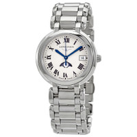 Stainless steel case with a stainless steel bracelet. Fixed stainless steel bezel. Silver dial with blue hands and Roman numeral hour markers. Minute markers around the outer rim. Dial Type: Analog. Date display at the 3 o'clock position. Moon phase display. Longines calibre L296 quartz movement. Scratch resistant sapphire crystal. Pull / push crown. Solid case back. Round case shape. Case size: 34 mm. Case thickness: 10.2 mm. Butterfly clasp. Water resistant at 30 meters / 100 feet. Functions: moon phase, date, hour, minute, second. Dress watch style. Watch label: Swiss Made. Longines PrimaLuna Quartz Silver Dial Ladies Watch L8.116.4.71.6. INFORMATION Brand: Longines Series: Primaluna Collection Name: PrimaLuna Gender: Womens Model: L8.116.4.71.6 Watch Label: Swiss Made Movement: Quartz Engine: Longines Calibre L296 CASE Case Size: 34 mm Case Thickness: 10.2 mm Case Material: Stainless Steel Case Shape: Round Case Back: Solid BAND Band Material: Stainless Steel Band Type: Bracelet Band Color: Silver-tone Clasp: Butterfly DIAL Dial Color: Silver Type: Analog Crystal: Scratch Resistant Sapphire Hands: Blue Dial Markers: Roman Numeral Second Markers: Minute Markers around the outer rim Sub Dials: Moonphase Bezel: Fixed Bezel Color: Silver-tone Bezel Material: Stainless Steel Crown: Pull / Push FEATURES Water Resistance: 30 meters / 100 feet Calendar: Date display at the 3 o'clock position Functions: Moon Phase, Date, Hour, Minute, Second Watch Features: Moon Phase, Stainless Steel, Analog ADDITIONAL INFO Watch Style: Dress Warranty: 2 Year Jomashop Warranty UPC Code: 703200206240 Jomashop Sku: LNG81164716 Department: Watches Category: Watches