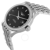 Stainless steel case with a brushed & polished stainless steel bracelet. Fixed stainless steel bezel. Black dial with silver-tone hands and diamond hour markers. Dial Type: Analog. Date display at the 3 o'clock position. ETA Caliber L592.4 ( A20.L11) beats at 28'800 vph automatic movement. Scratch resistant sapphire crystal. Pull / push crown. Transparent case back. Round case shape, case size: 30 mm. Push button folding clasp. Water resistant at 30 meters / 99 feet. Functions: date, hour, minute, second. Record Series. Dress watch style. Watch label: Swiss Made. Longines Record Automatic Diamond Black Dial Ladies Watch L23210576. INFORMATION Brand: Longines Series: Record Collection Name: Record Gender: Womens Model: L23210576 Watch Label: Swiss Made Movement: Automatic Engine: ETA Caliber L592.4 ( A20.L11) beats at 28'800 vph CASE Case Size: 30 mm Case Material: Stainless Steel Case Shape: Round Case Back: Transparent BAND Band Material: Stainless Steel Band Type: Bracelet Band Color: Brushed & Polished Clasp: Push Button Folding Clasp DIAL Dial Color: Black Type: Analog Crystal: Scratch Resistant Sapphire Hands: Silver-tone Dial Markers: Diamond Bezel: Fixed Bezel Material: Stainless Steel Crown: Pull / Push FEATURES Water Resistance: 30 meters / 99 feet Calendar: Date display at the 3 o'clock position Functions: Date, Hour, Minute, Second Watch Features: Diamond, Stainless Steel, Analog ADDITIONAL INFO Watch Style: Dress Warranty: 2 Year Jomashop Warranty Jomashop Sku: LNG23210576 Department: Watches Category: Watches