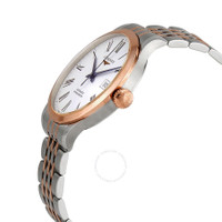 Silver-tone stainless steel case with a silver-tone stainless steel with 18kt rose gold (capped) links bracelet. Fixed 18kt rose gold (capped) stainless steel bezel. Matt white dial with blue hands and Roman numeral hour markers. Minute markers around the outer rim. Dial Type: Analog. Date display at the 3 o'clock position. Longines Calibre L888.4 Automatic movement, based upon ETA A31.L11, containing 21 Jewels, bitting at 25200 vph, and has a power reserve of approximately 64 hours. Scratch resistant sapphire crystal. Pull / push crown. Transparent see through case back. Round case shape, case size: 40 mm, case thickness: 10.8 mm. Band width: 20 mm. Fold over clasp with a push button release. Water resistant at 30 meters / 100 feet. Functions: date, hour, minute, second. Record Series. Dress watch style. Watch label: Swiss Made. Longines Record Automatic Men's Watch L2.821.5.11.7. GENERAL Box Type: Original Box CASE Case Size: 40 Case Thickness: 10.8 mm Case Material: Stainless Steel Case Shape: Round Case Back: Transparent See Through BAND Band Material: Stainless Steel with 18kt Rose Gold (Capped) Links Band Type: Bracelet Band Color: Silver-tone Band Width: 20 mm Clasp: Fold Over with Push Button Release DIAL Dial Color: Matt White Type: Analog Crystal: Scratch Resistant Sapphire Hands: Blue Dial Markers: Roman Numeral Second Markers: Minute Markers around the outer rim Bezel: Fixed Bezel Color: 18kt Rose Gold (Capped) Bezel Material: Stainless Steel Crown: Pull / Push INFORMATION Brand: Longines Series: Record Collection Name: Record Gender: Mens Model: L2.821.5.11.7 Watch Label: Swiss Made Movement: Automatic Engine: Longines Calibre L888.4 Power Reserve: 72 hours FEATURES Water Resistance: 30 meters / 100 feet Calendar: Date display at the 3 o'clock position Functions: Date, Hour, Minute, Second Watch Features: Analog, Gold, Stainless Steel ADDITIONAL INFO Watch Style: Dress Warranty: 2 Year Jomashop Warranty UPC Code: 7612356204679 Jomashop Sku: LNG28215117 Department: Watches Category: Watches