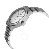 Stainless steel case with stainless steel bracelet. Fixed stainless steel bezel. Silver sunray dial with silver-tone hands and index hour markers. Minute markers around the outer rim. Dial Type: Analog. Date display at the 3 o'clock position. Longines calibre L592.4 automatic movement, based upon ETA A20.L11, containing 22 Jewels, bitting at 28800 vph, and has a power reserve of approximately 40 hours. Scratch resistant sapphire crystal. Pull / push crown. Transparent case back. Round case shape. Case size: 30 mm. Case thickness: 9 mm. Band width: 15 mm. Fold over clasp with a push button release. Water resistant at 30 meters / 100 feet. Functions: date, hour, minute, second. Record Series. Casual watch style. Watch label: Swiss Made. Longines Record Automatic Silver Dial Ladies Watch L2.321.4.72.6. INFORMATION Brand: Longines Series: Record Collection Name: Record Gender: Womens Model: L2.321.4.72.6 Watch Label: Swiss Made Movement: Automatic Engine: Longines Calibre L592.4 Power Reserve: 40 hours CASE Case Size: 30 mm Case Thickness: 9 mm Case Material: Stainless Steel Case Shape: Round Case Back: Transparent BAND Band Material: Stainless Steel Band Type: Bracelet Band Color: Silver-tone Band Width: 15 mm Clasp: Fold Over with Push Button Release DIAL Dial Color: Silver Sunray Type: Analog Crystal: Scratch Resistant Sapphire Hands: Silver-tone Dial Markers: Index Second Markers: Minute Markers around the outer rim Bezel: Fixed Bezel Color: Silver-tone Bezel Material: Stainless Steel Crown: Pull / Push FEATURES Water Resistance: 30 meters / 100 feet Calendar: Date display at the 3 o'clock position Functions: Date, Hour, Minute, Second Watch Features: Stainless Steel, Analog ADDITIONAL INFO Watch Style: Casual Warranty: 2 Year Jomashop Warranty UPC Code: 7612356201029 Jomashop Sku: LNG23214726 Department: Watches Category: Watches