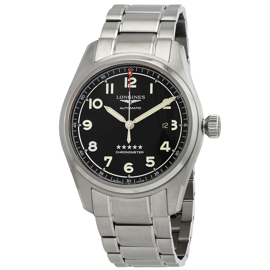 Stainless steel case with a silver-tone stainless steel bracelet. Fixed silver-tone stainless steel bezel. Black dial with Arabic numeral hour markers. Dial Type: Analog. Date display at the 3 o'clock position. Longines Calibre L888.4 Automatic movement, based upon ETA A31.L11, containing 21 Jewels, bitting at 25200 vph, and has a power reserve of approximately 64 hours. Scratch resistant sapphire crystal. Screw down crown. Solid case back. Round case shape, case size: 42 mm. Deployment clasp. Water resistant at 100 meters / 330 feet. Functions: date, hour, minute, second, chronometer. Spirit Series. Luxury watch style. Watch label: Swiss Made. Longines Spirit Automatic Chronometer Black Dial Men's Watch L3.811.4.53.6. INFORMATION Brand: Longines Series: Spirit Collection Name: Spirit Gender: Mens Model: L3.811.4.53.6 Watch Label: Swiss Made Movement: Automatic Engine: Longines Calibre L888.4 Power Reserve: 64 hours CASE Case Size: 42 mm Case Material: Stainless Steel Case Shape: Round Case Back: Solid BAND Band Material: Stainless Steel Band Type: Bracelet Band Color: Silver-tone Clasp: Deployment DIAL Dial Color: Black Type: Analog Crystal: Scratch Resistant Sapphire Dial Markers: Arabic Numeral Bezel: Fixed Bezel Color: Silver-tone Bezel Material: Stainless Steel Crown: Screw Down FEATURES Water Resistance: 100 meters / 330 feet Calendar: Date display at the 3 o'clock position Functions: Date, Hour, Minute, Second, Chronometer Watch Features: Stainless Steel, Chronometer, Analog ADDITIONAL INFO Watch Style: Luxury Warranty: 2 Year Jomashop Warranty UPC Code: 7612356213572 Jomashop Sku: LNG38114536 Department: Watches Category: Watches