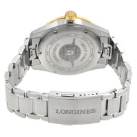 Silver-tone stainless steel case and bracelet. Bi-directional rotating 18kt yellow gold bezel. Anthracite dial with gold-tone hands and Arabic numeral hour markers. Minute markers around the outer rim. Dial Type: Analog. Luminescent hands and markers. Date display at the 6 o'clock position. Longines Calibre L844.4 automatic movement with a 72-hour power reserve. Scratch resistant sapphire crystal. Screw down crown. Solid case back. Round case shape, case size: 42 mm, case thickness: 13.9 mm. Band width: 22 mm. Fold over clasp with a safety release. Water resistant at 100 meters / 330 feet. Functions: date, hour, minute, second. Longines Spirit Zulu Time Series. Sport watch style. Watch label: Swiss Made. Longines Spirit Zulu Time Automatic Anthracite Dial Men's Watch L3.812.5.53.6. GENERAL Box Type: Original Box CASE Case Diameter: 42 mm Case Thickness: 13.9 mm Case Material: Stainless Steel Case Shape: Round Case Back: Solid BAND Band Material: Stainless Steel Band Type: Bracelet Band Color: Silver-tone Band Width: 22 mm Clasp: Fold Over with Safety Release DIAL Dial Color: Anthracite Type: Analog Crystal: Scratch Resistant Sapphire Hands: Gold-tone Dial Markers: Arabic Numeral Second Markers: Minute Markers around the outer rim Luminiscence: Hands and Markers Bezel: Bi-directional Rotating Bezel Material: 18kt Yellow Gold Crown: Screw Down INFORMATION Brand: Longines Series: Longines Spirit Zulu Time Collection Name: Longines Spirit Zulu Time Gender: Mens Model: L3.812.5.53.6 Watch Label: Swiss Made Movement: Automatic Engine: Longines Calibre L844.4 Power Reserve: 72 hours FEATURES Water Resistance: 100 meters / 330 feet Calendar: Date display at the 6 o'clock position Functions: Date, Hour, Minute, Second Watch Features: Analog, Gold, Stainless Steel ADDITIONAL INFO Watch Style: Sport Warranty: 2 Year Jomashop Warranty Jomashop Sku: LNG38125536 Department: Watches Category: Watches