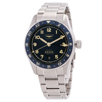 Silver-tone stainless steel case and bracelet. Bi-directional rotating blue ceramic bezel. Anthracite dial with gold-tone hands and Arabic numeral hour markers. Minute markers around the outer rim. Dial Type: Analog. Date display at the 6 o'clock position. Longines Calibre L844.4 automatic movement with a 72-hour power reserve. Scratch resistant sapphire crystal. Screw down crown. Solid case back. Round case shape, case size: 39 mm, case thickness: 13.5 mm. Band width: 21 mm. Fold over clasp with a safety release. Water resistant at 100 meters / 330 feet. Functions: date, hour, minute, second, chronometer. Spirit Series. Dress watch style. Watch label: Swiss Made. Longines Spirit Zulu Time Automatic Chronometer Men's Watch L38024606. GENERAL Box Type: Original Box CASE Case Thickness: 13.5 mm Case Material: Stainless Steel Case Shape: Round Case Back: Solid BAND Band Material: Stainless Steel Band Type: Bracelet Band Color: Silver-tone Band Width: 21 mm Clasp: Fold Over with Safety Release DIAL Dial Color: Anthracite Type: Analog Crystal: Scratch Resistant Sapphire Hands: Gold-tone Dial Markers: Arabic Numeral Second Markers: Minute Markers around the outer rim Bezel: Bi-directional Rotating Bezel Color: Blue Bezel Material: Ceramic Crown: Screw Down INFORMATION Brand: Longines Series: Spirit Collection Name: Spirit Gender: Mens Model: L38024606 Watch Label: Swiss Made Movement: Automatic Engine: Longines Calibre L844.4 Power Reserve: 72 hours FEATURES Water Resistance: 100 meters / 330 feet Calendar: Date display at the 6 o'clock position Functions: Date, Hour, Minute, Second, Chronometer Watch Features: Analog, Chronometer, Ceramic, Gold, Stainless Steel ADDITIONAL INFO Watch Style: Dress Warranty: 2 Year Jomashop Warranty UPC Code: 7612356232672 Jomashop Sku: LNGL38024606 Department: Watches