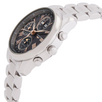 Silver-tone stainless steel case and bracelet. Fixed silver-tone stainless steel bezel. Anthracite dial with rose gold-tone hands and Roman numeral hour markers. Date scale around the outer rim. Dial Type: Analog. Day and month display below the 12 o'clock positions. Three sub-dials displaying: small second/24 hour, moonphase/12 hour, 30 minute. Longines Calibre L687 Automatic movement, based upon ETA 7751, containing 25 Jewels, bitting at 28800 vph, and has a power reserve of approximately 54 hours. Scratch resistant sapphire crystal. Pull / push crown. Transparent case back. Round case shape, case size: 40 mm, case thickness: 14.3 mm. Band width: 21 mm. Fold over clasp with a safety release. Water resistant at 30 meters / 100 feet. Functions: moon phase, chronograph, column wheel, month, date, day, GMT, second time zone, hour, minute, small second. The Longines Master Collection Series. Sport watch style. Watch label: Swiss Made. Longines The Longines Master Collection Chronograph GMT Automatic Moon Phase Anthracite Dial Men's Watch L2.673.4.61.6. CASE Case Size: 40 Case Thickness: 14.3 mm Case Material: Stainless Steel Case Shape: Round Case Back: Transparent BAND Band Material: Stainless Steel Band Type: Bracelet Band Color: Silver-tone Band Width: 21 mm Clasp: Fold Over with Safety Release DIAL Dial Color: Anthracite Type: Analog Crystal: Scratch Resistant Sapphire Hands: Rose Gold-tone Dial Markers: Roman Numeral Second Markers: Date Scale around the outer rim Sub Dials: Three - Small Second/24 Hour, Moonphase/12 Hour, 30 Minute Bezel: Fixed Bezel Color: Silver-tone Bezel Material: Stainless Steel Crown: Pull / Push INFORMATION Brand: Longines Series: The Longines Master Collection Collection Name: The Longines Master Collection Gender: Mens Model: L2.673.4.61.6 Watch Label: Swiss Made Movement: Automatic Engine: Longines Calibre L687 Power Reserve: 66 hours FEATURES Water Resistance: 30 meters / 100 feet Calendar: Day and Month display below the 12 o'clock positions Functions: Moon Phase, Chronograph, Column Wheel, Month, Date, Day, GMT, Second Time Zone, Hour, Minute, Small Second Watch Features: Analog, GMT, Month, Gold, Stainless Steel, Moon Phase, Chronograph, Time Zone ADDITIONAL INFO Watch Style: Sport Warranty: 2 Year Jomashop Warranty Jomashop Sku: LNG26734616 Department: Watches Category: Watches