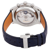 Silver-tone stainless steel case with a blue alligator leather strap. Fixed silver-tone stainless steel bezel. Silver dial with blue hands and Roman numeral hour markers. Date scale around the outer rim. Dial Type: Analog. Day and month display below the 12 o'clock positions. Three sub-dials displaying: small second/24 hour, moonphase/12 hour, 30 minute. Longines Calibre L687 Automatic movement, based upon ETA 7751, containing 25 Jewels, bitting at 28800 vph, and has a power reserve of approximately 54 hours. Scratch resistant sapphire crystal. Pull / push crown. Transparent case back. Round case shape, case size: 42 mm, case thickness: 14.2 mm. Band width: 21 mm. Folding buckle clasp. Water resistant at 30 meters / 100 feet. Functions: moon phase, chronograph, column wheel, month, date, day, GMT, second time zone, hour, minute, small second. The Longines Master Collection Series. Sport watch style. Watch label: Swiss Made. Longines The Longines Master Collection Chronograph GMT Automatic Moon Phase Silver Dial Men's Watch L2.773.4.71.2. CASE Case Size: 42 Case Thickness: 14.2 mm Case Material: Stainless Steel Case Shape: Round Case Back: Transparent BAND Band Material: Alligator Leather Band Type: Strap Band Color: Blue Band Width: 21 mm Clasp: Folding Buckle DIAL Dial Color: Silver Type: Analog Crystal: Scratch Resistant Sapphire Hands: Blue Dial Markers: Roman Numeral Second Markers: Date Scale around the outer rim Sub Dials: Three - Small Second/24 Hour, Moonphase/12 Hour, 30 Minute Bezel: Fixed Bezel Color: Silver-tone Bezel Material: Stainless Steel Crown: Pull / Push INFORMATION Brand: Longines Series: The Longines Master Collection Collection Name: The Longines Master Collection Gender: Mens Model: L2.773.4.71.2 Watch Label: Swiss Made Movement: Automatic Engine: Longines Calibre L687 Power Reserve: 66 hours FEATURES Water Resistance: 30 meters / 100 feet Calendar: Day and Month display below the 12 o'clock positions Functions: Moon Phase, Chronograph, Column Wheel, Month, Date, Day, GMT, Second Time Zone, Hour, Minute, Small Second Watch Features: Alligator Leather, Analog, GMT, Month, Leather, Stainless Steel, Moon Phase, Chronograph, Time Zone ADDITIONAL INFO Watch Style: Sport Warranty: 2 Year Jomashop Warranty Jomashop Sku: LNG27734712 Department: Watches Category: Watches