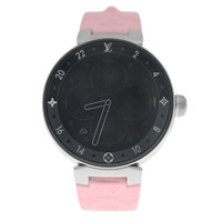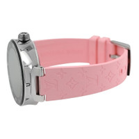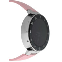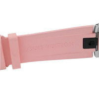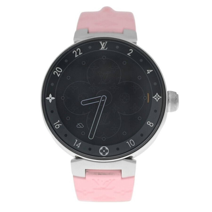 Silver-tone stainless steel case with a pink rubber strap. Fixed silver-tone stainless steel bezel. Black dial with silver-tone hands and Arabic numeral & index hour markers. Dial Type: Analog-digital. Eco-drive movement. Round case shape, case size: 42 mm. Buckle clasp. Functions: date, day, hour, minute, second. Tambour Horizon Series. Sport watch style. Pre-owned Louis Vuitton Tambour Horizon Black Dial Men's Watch QA050. GENERAL Comments: This watch is in near-mint condition with no visible scratches to the naked eye, but may have some tiny scratches under a very close-up inspection. The only exception is the small scratches on the back case. The strap is in unused condition. The digital smartwatch movement is in perfect working order. You would have to download an louis vuitton app to your phone to set up this watch. It fits a wrist up to 7.75 inches. Comes with the original charger plate and the USB cord, no USB wall plug. Se Preowned Item Condition: Mint Brand Type: Designer CASE Case Material: Stainless Steel Case Shape: Round BAND Band Material: Rubber Band Type: Strap Band Color: Pink Clasp: Buckle DIAL Dial Color: Black Type: Analog-Digital Hands: Silver-tone Dial Markers: Arabic Numeral & Index Bezel: Fixed Bezel Color: Silver-tone Bezel Material: Stainless Steel INFORMATION Brand: Louis Vuitton Series: Tambour Horizon Collection Name: Tambour Horizon Gender: Mens Model: QA050 Movement: Eco-Drive FEATURES Functions: Date, Day, Hour, Minute, Second Watch Features: Digital, Analog, Rubber, Stainless Steel ADDITIONAL INFO Watch Style: Casual Warranty: 1 Year Jomashop Warranty Jomashop Sku: PRE-P-104454 Department: Watches Category: Smart Watches