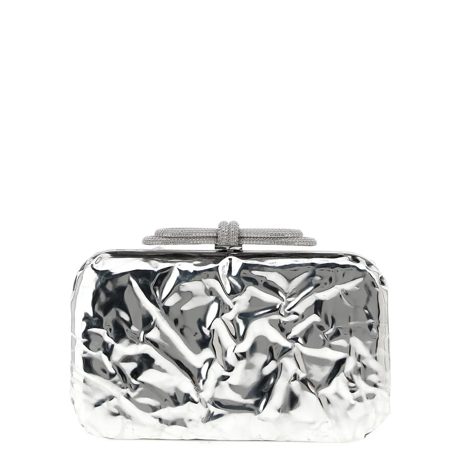 Clutch 'Double Bow Wrapped Mirror' In Wrinkled-Effect Laminated Leather, Metal Closure With Jewel Bow Application, Removable Chain Shoulder Strap. Composition: 100% Calfskin Leather (Bos Taurus) GENERAL Color: Silver INFORMATION Brand: Mach & Mach Gender: Womens Model: PF25BG0002WRPSIL ADDITIONAL INFO UPC Code: 1000000340471 Jomashop Sku: Z-8WQHA Department: Bags Category: Clutches