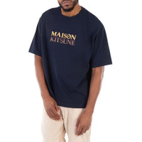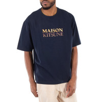 Maison Kitsune Men's Tops. Fashion category: T-Shirts & Henleys. SKU: NM00116KJ0119-NAVY. Color: Navy. Maison Kitsune Gradient Logo Oversized T-Shirt. Crafted from cotton, this oversized t-shirt boasts a rib-knit crewneck, short sleeves with reinforced seams at both the sleeves and waist, and an embroidered "Maison Kitsune" logo in a vibrant color gradient across the front. 100% Cotton. GENERAL Color: Navy INFORMATION Brand: Maison Kitsune Gender: Mens Model: NM00116KJ0119-NAVY DETAILS Category: Tops Apparel Type: T-Shirts & Henleys Material: Cotton ADDITIONAL INFO Jomashop Sku: -NM00116KJ0119NAVY Department: Clothing