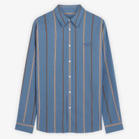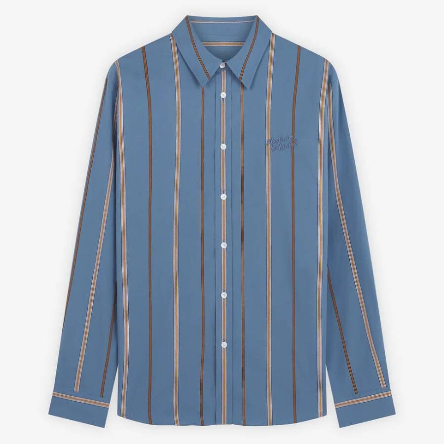 Maison Kitsune Men's Tops. Fashion category: Casual Button-Downs. SKU: MM00416WC5029-P446. Color: Lake Blue. Maison Kitsune Heritage Striped Poplin Shirt. This relaxed-fit shirt is crafted from crisp heritage striped poplin and features a shirt collar, button closure, and long sleeves with buttoned cuffs. Finished with a tonal embroidered "Maison Kitsune Handwriting" signature on the chest and a rounded hem for a clean, casual look. 85% Cotton, 15% Polyamide. GENERAL Color: Lake Blue INFORMATION Brand: Maison Kitsune Gender: Mens Model: MM00416WC5029-P446 DETAILS Category: Tops Apparel Type: Casual Button-Downs Material: Cotton, Polyamide ADDITIONAL INFO Jomashop Sku: -00416WC5029LAKEBLUE Department: Clothing