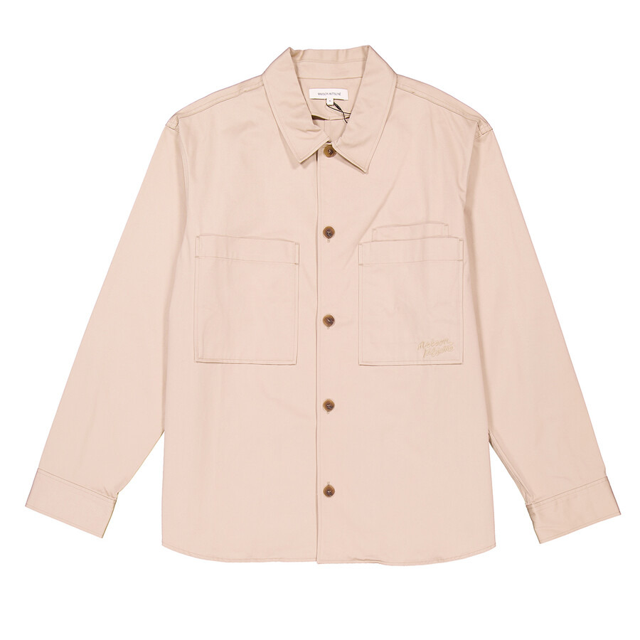 Maison Kitsune Men's Tops. Fashion category: Casual Button-Downs. SKU: MM00401WW0078-LIGHT BEI. Color: Beige. Maison Kitsune Long-Sleeve Cotton Gabardine Overshirt. This relaxed-fit plain cotton gabardine overshirt features a shirt collar, engraved horn button closure, long sleeves with buttoned straight cuffs, three patch chest pockets, and a tonal embroidered "Maison Kitsune Handwriting" signature on one pocket. 100% Cotton. GENERAL Color: Beige INFORMATION Brand: Maison Kitsune Gender: Mens Model: MM00401WW0078-LIGHT BEI DETAILS Category: Tops Apparel Type: Casual Button-Downs ADDITIONAL INFO Jomashop Sku: -00401WW0078LIGHTBEI Department: Clothing