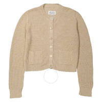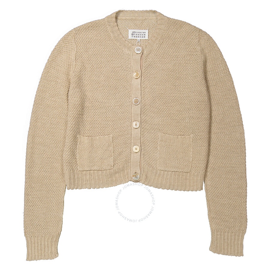 Maison Margiela Ladies Tops. Fashion category: Cardigans & Sweaters. SKU: S51HP0004S18200-113. Color: Banana. Maison Margiela Ladies Banana Knitted Long-Sleeve Cardigan. Constructed from durable hemp, this garment boasts a knitted construction with a ribbed-knit edge for added texture and style. Featuring a classic crew neck and front button fastening, it includes two front patch pockets for practicality. With long sleeves and a straight hem, this piece offers both comfort and versatility. Made in Italy. GENERAL Color: Banana INFORMATION Brand: Maison Margiela Gender: Womens Model: S51HP0004S18200-113 DETAILS Category: Tops Apparel Type: Cardigans & Sweaters ADDITIONAL INFO Jomashop Sku: -S51HP0004S18200113 Department: Apparel