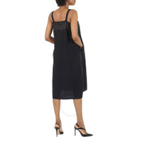 Maison Margiela Ladies Dresses. SKU: S51DD0009S76578-900. Color: Black. Maison Margiela Ladies Black Silk Viscose Midi Dress. Crafted from a blend of silk and viscose, the dress offers a luxurious feel against the skin. The crepe de chine fabric adds a subtle texture, enhancing the overall richness of the garment. The loose-fit design provides an effortless and relaxed silhouette, allowing for comfort without compromising on style.Practicality meets style with the inclusion of side pockets, combining functionality with the dress's flowing elegance. The decorative cut-out detailing and unique design elements showcase Maison Margiela's dedication to artistic craftsmanship. Each feature contributes to the overall allure and individuality of the dress. 62% Viscose, 28% Silk. Made in Italy. GENERAL Color: Black INFORMATION Brand: Maison Margiela Gender: Womens Model: S51DD0009S76578-900 DETAILS Category: Dresses Material: Silk, Viscose ADDITIONAL INFO Jomashop Sku: -S51DD0009S76578900 Department: Apparel
