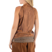 Maison Margiela Ladies Tops. Fashion category: Shirts & Blouses. SKU: S51NC0621S52413-001F. Color: Camel. Maison Margiela Ladies Camel Houndstooth Wool Decortique Top. Crafted in houndstooth wool, this top features a halterneck, sleeveless design, contrasting fabric, four stitches on the rear, a zip closure, and belt loops. GENERAL Color: Camel INFORMATION Brand: Maison Margiela Gender: Womens Model: S51NC0621S52413-001F DETAILS Category: Tops Apparel Type: Shirts & Blouses ADDITIONAL INFO Jomashop Sku: -S51NC0621S52413001F Department: Apparel