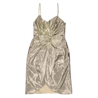 Maison Margiela Ladies Dresses. Fashion category: Cocktail & Party Dresses. SKU: S51DD0003S76692-905. Color: Silver. Maison Margiela Ladies Silver Bow Detail Midi Dress. This dress showcases gathered embellishments, a charming bow accent, a wrap-style design, delicate thin shoulder straps, a sweetheart neckline, and a stylish mid-length cut. 70% cotton 30% polyester. GENERAL Color: Silver INFORMATION Brand: Maison Margiela Gender: Womens Model: S51DD0003S76692-905 DETAILS Category: Dresses Apparel Type: Cocktail & Party Dresses Material: Cotton, Polyester ADDITIONAL INFO Jomashop Sku: -S51DD0003S76692905 Department: Apparel