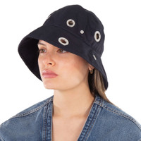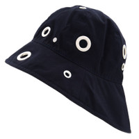 Maison Michel Ladies Hats. Fashion category: Hats. SKU: 2540001001-DARK N. Color: Blue. Maison Michel Ladies Blue Juliet Asymmetric Bucket Hat. The Juliet hat features an asymmetric design with eyelet embellishments, a silver-tone logo plaque, and an asymmetric brim. It has a round crown and a pull-on style. Cotton 100% GENERAL Color: Blue INFORMATION Brand: Maison Michel Gender: Womens Model: 2540001001-DARK N DETAILS Category: Hats Apparel Type: Hats ADDITIONAL INFO Jomashop Sku: -2540001001DARKN Department: Fashion Accessories