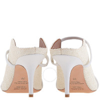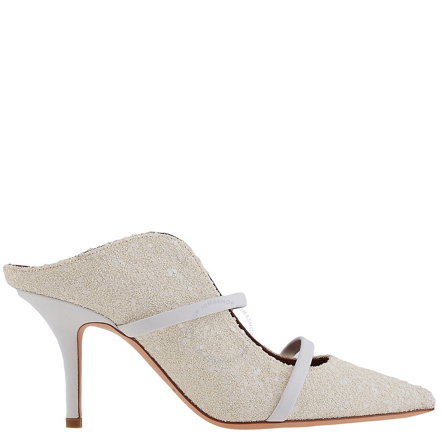 Malone Souliers Ladies Heels. SKU: MAUREEN 70-256. Color: White. Malone Souliers Maureen Ladies 70 Double Straps Leather Mules. These mules feature a pointed toe, leather straps, an open back, a covered stiletto heel and a branded leather insole and outsole. Made in Italy. Please visit the brand website for sizing information. INFORMATION Brand: Malone Souliers Model: MAUREEN 70-256 Gender: Womens DETAILS Category: Heels Shoe Style: Mules Shoe Style: Mules Color: White Shoe Vamp Style: Slip-on Upper Material: Leather Heel Size: 70mm/2.7in ADDITIONAL INFO Jomashop Sku: -MAUREEN70256 Department: Shoes